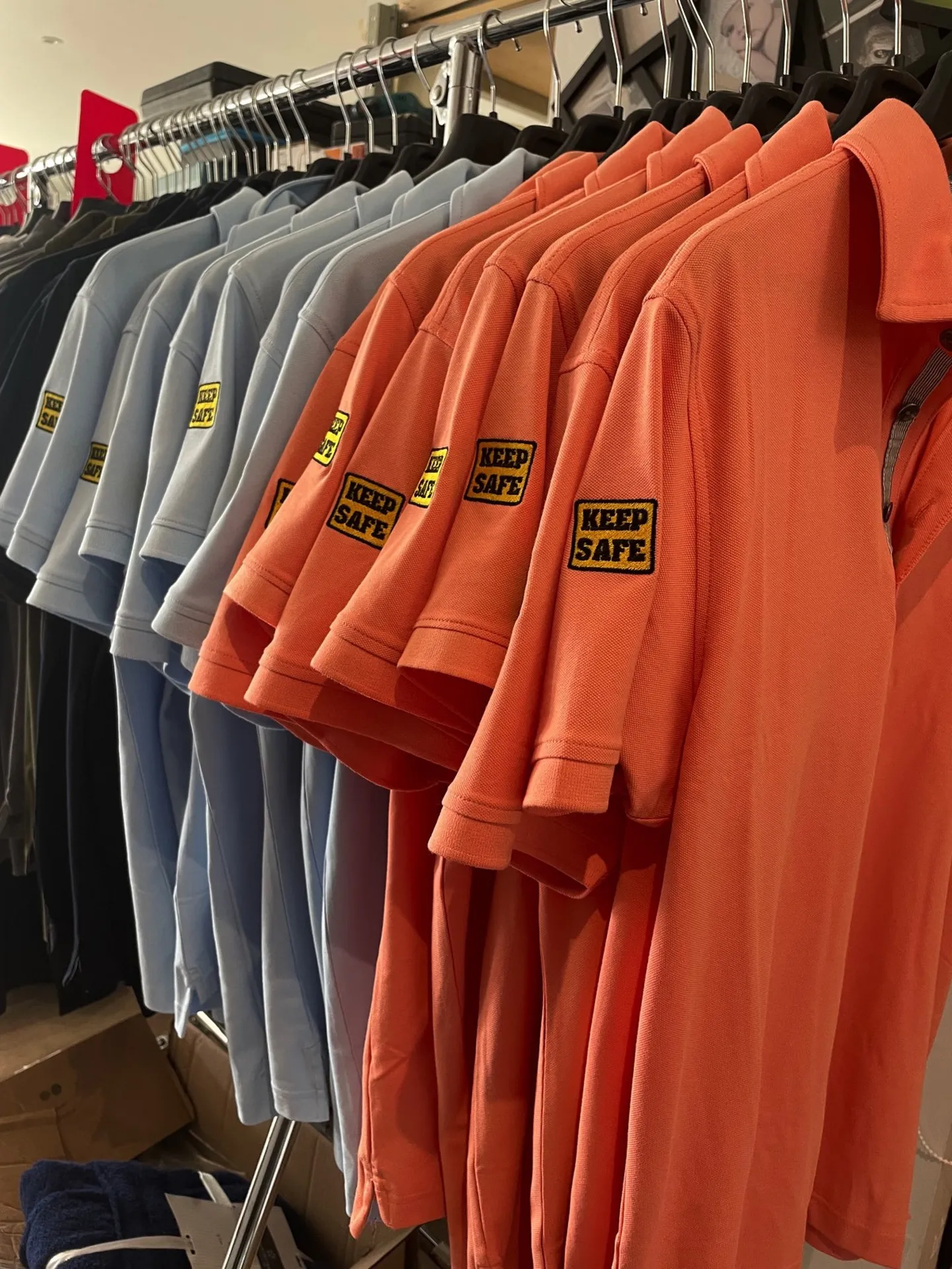 Pour des interventions dans des lycées professionnels la société Keep Safe a fait elle-même appel à nous pour personnaliser ses polos. Ils nous ont fourni le PDF de leur logo et c’est avec celui-ci que nous avons créé la maquette de broderie. Les polos ont été brodés sur la manche droite.