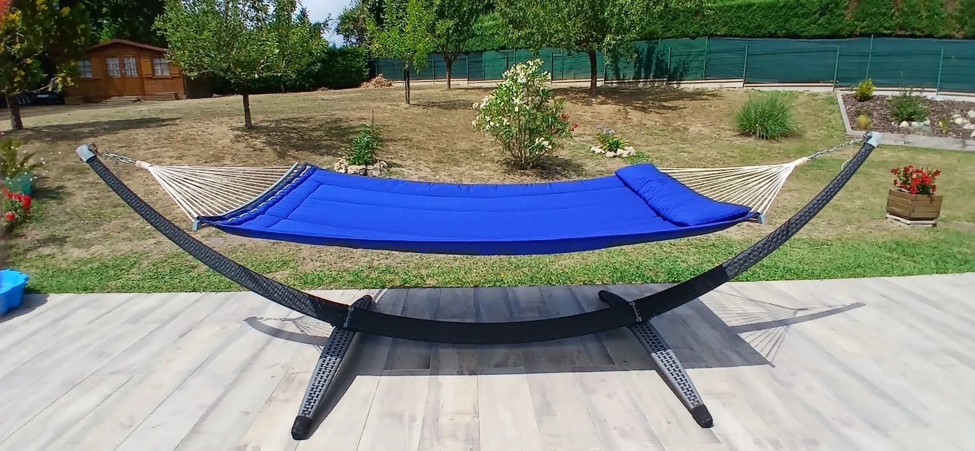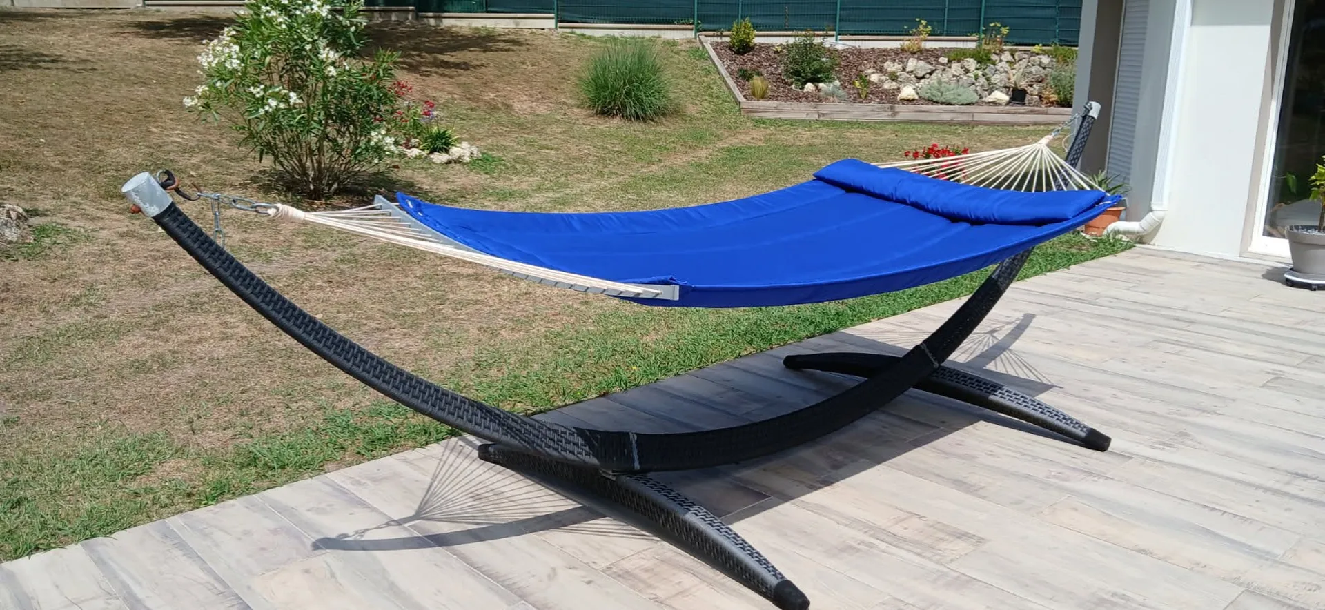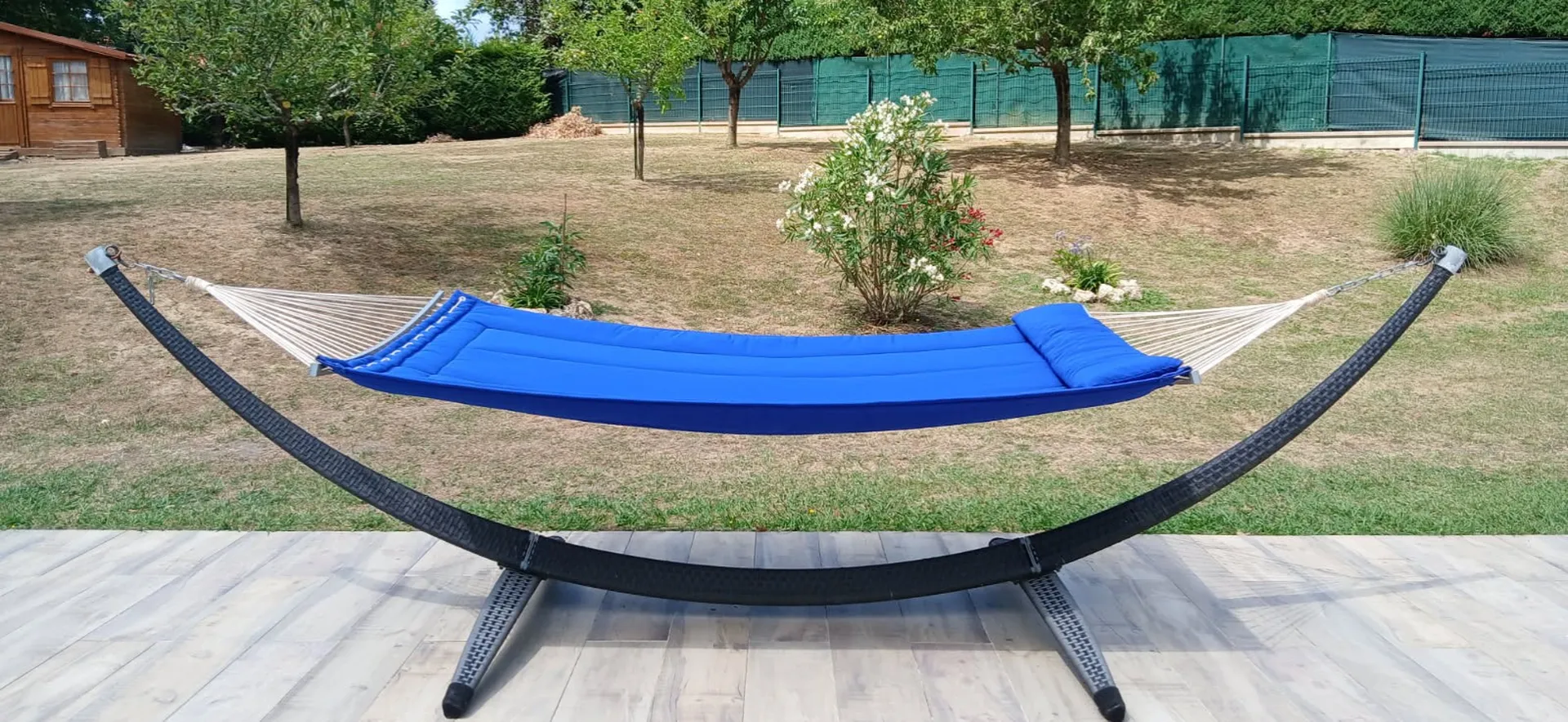 Le résultat ? Un hamac douillet, élégant et unique, que nos clients ont adoré. Ils nous ont d’ailleurs envoyé de superbes photos de leur nouvel espace détente près de Bordeaux !