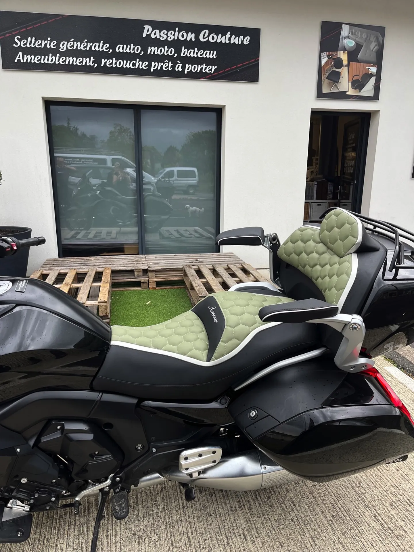 Passion Couture a été contacté par des clients pour refaire leur selle de moto personnalisée.