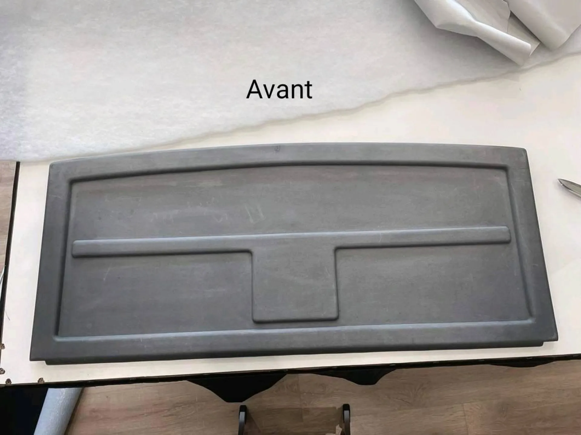 Le client souhaitait conserver l’aspect d’origine de sa planche arrière. Nous avons donc opté pour une moquette souple et fine de couleur noire. Une fois la plage arrière préparée par nos soins, nous avons pu procéder à la rénovation intégrale de sa plage arrière.