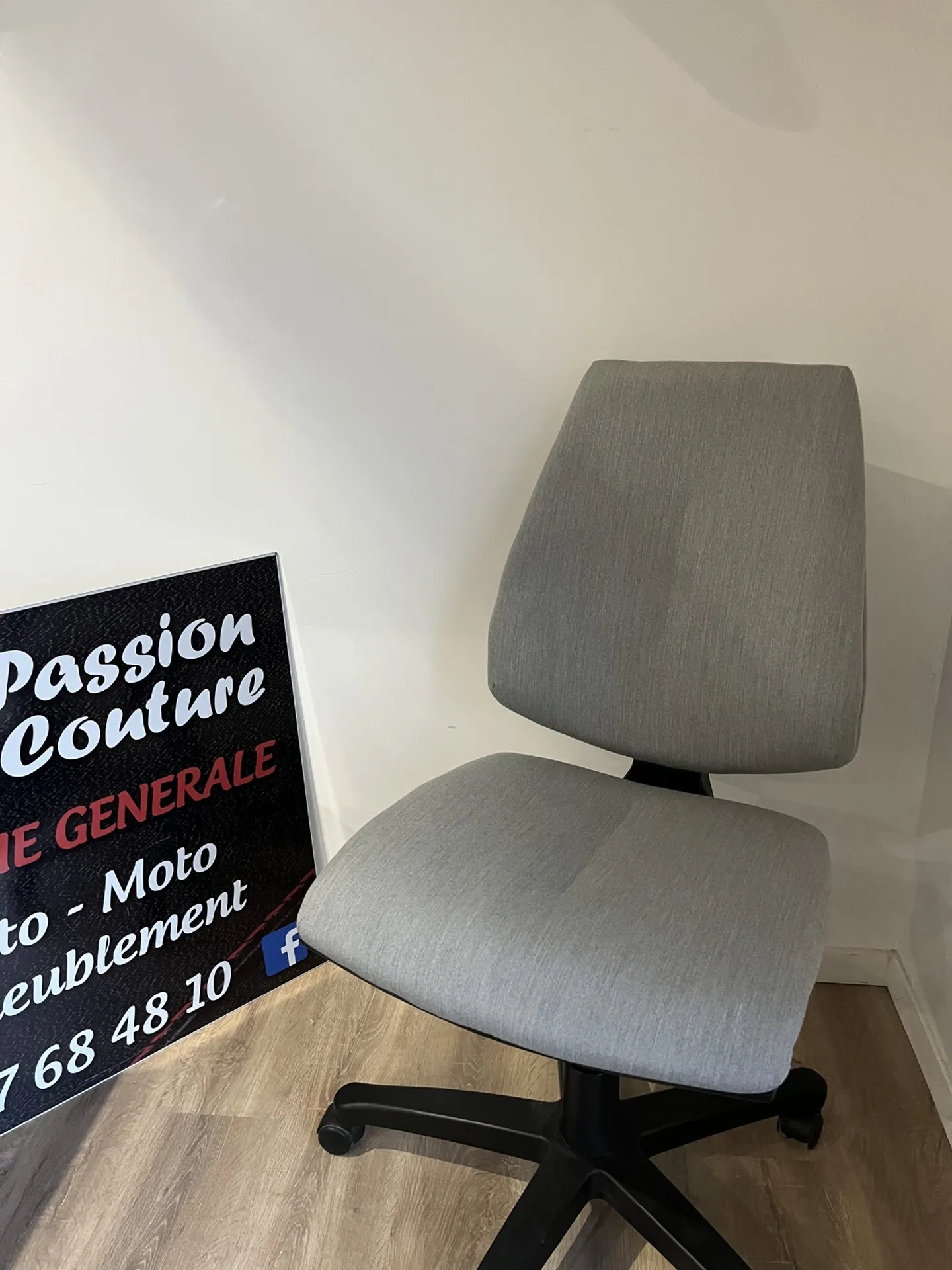 L’atelier Passion Couture situé à St Quentin de Baron a été contacté pour une réfection de chaise de bureau.