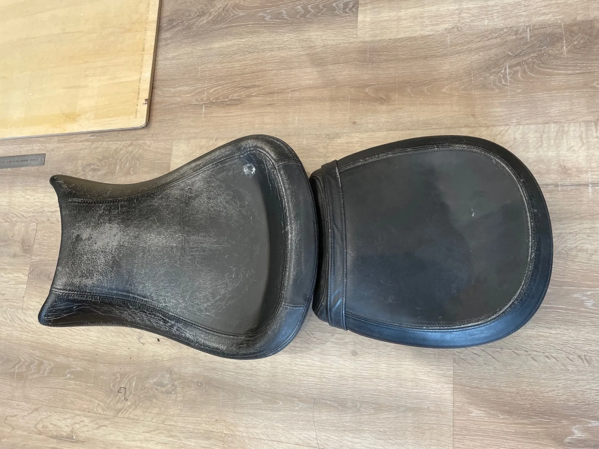 Rénovation selle de moto en Skaï imitation cuir vieilli sur bordeaux